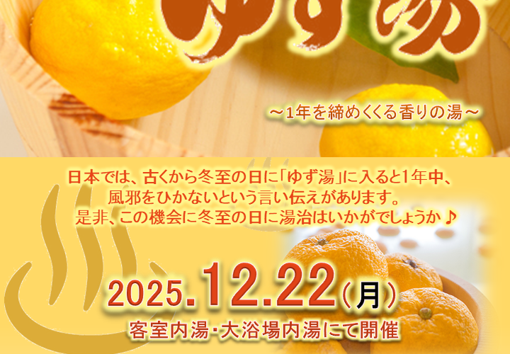 2025/12/21キャンペーン&プラン 今年も冬至はゆず湯で! 2025/11/01キャンペーン&プラン お待ちかね!ボジョレーヌーヴォー解禁!! 2025/10/03キャンペーン&プラン Happy halloween 2025 2025/08/02キャンペーン&プラン 今年の中秋の名月はブルームーンで乾杯! 2025/07/07キャンペーン&プラン たなばた祭り2025 2025/06/22キャンペーン&プラン ことしのお願いごとは? 2025/05/05キャンペーン&プラン 5月5日は菖蒲湯です!! 2025/01/13キャンペーン&プラン 鬼は~外!福は~内! 2024/11/20キャンペーン&プラン 冬至にはゆず湯で! Page 1 of 3123Next